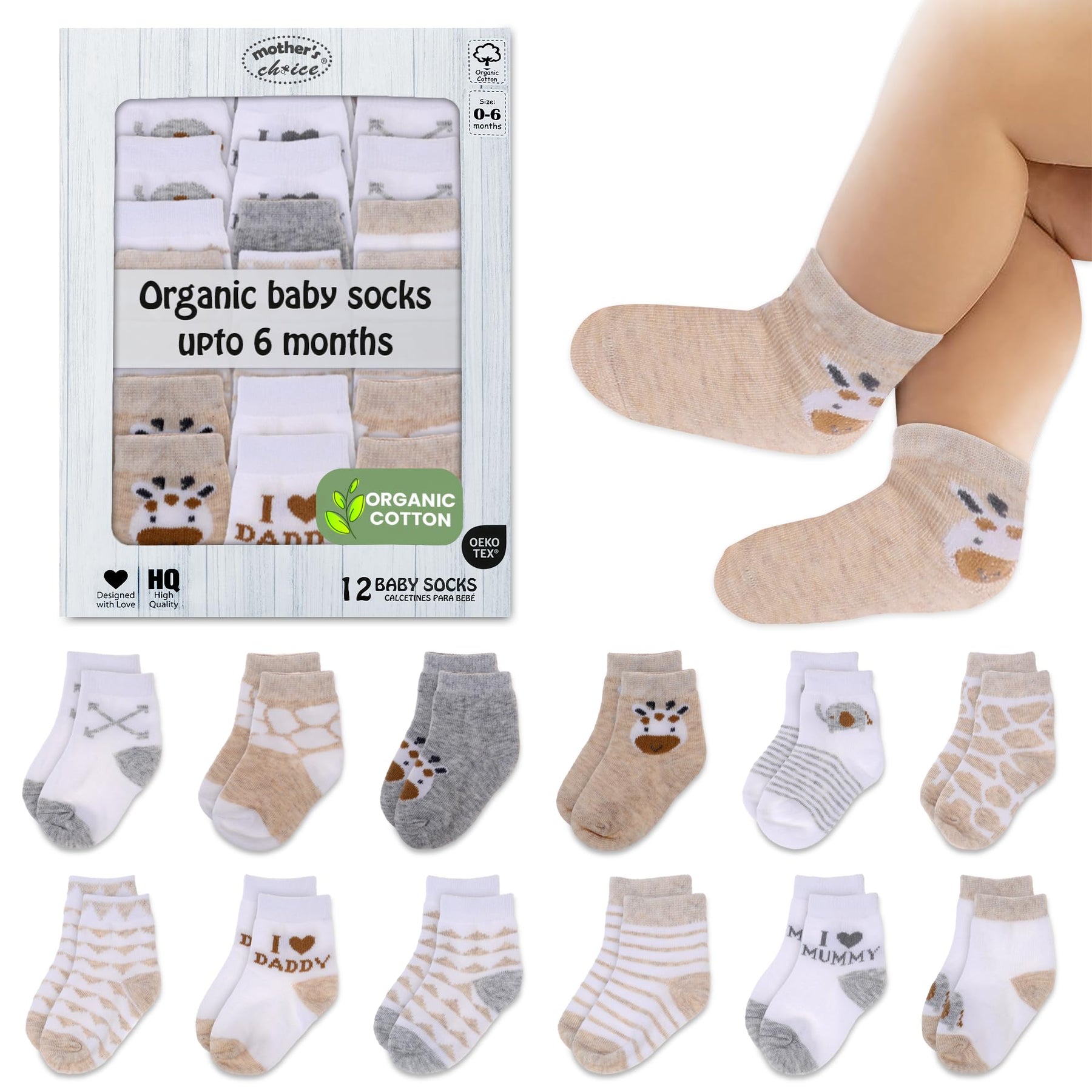- 𝐎𝐫𝐠𝐚𝐧𝐢𝐜, 𝐒𝐤𝐢𝐧-𝐅𝐫𝐢𝐞𝐧𝐝𝐥𝐲 𝐂𝐨𝐦𝐟𝐨𝐫𝐭: Embrace your baby's feet with the pure softness of Mother's Choice baby socks. Our organic cotton fabric is gentle and hypoallergenic, ideal for newborns' sensitive skin, ensuring comfort without the risk of irritation.