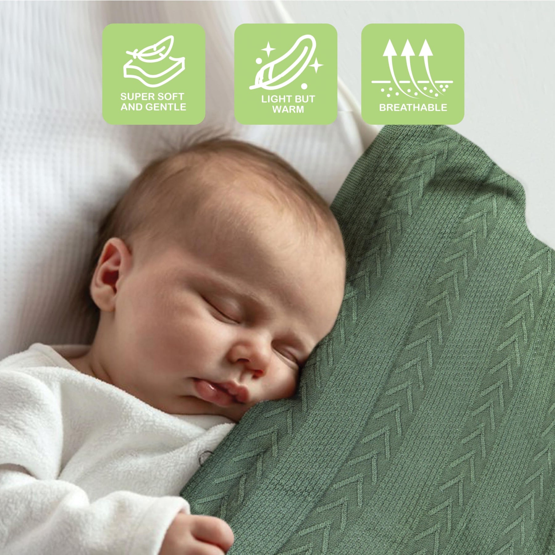 Comforting Embrace for Delicate Skin: Our organic cotton baby blanket, designed specifically for baby boy blankets newborn soft needs, offers unmatched gentleness, ideal for newborn blanket needs. It's hypoallergenic, preventing irritation and rash, perfect for organic cotton baby blanket, ensuring a peaceful sleep.