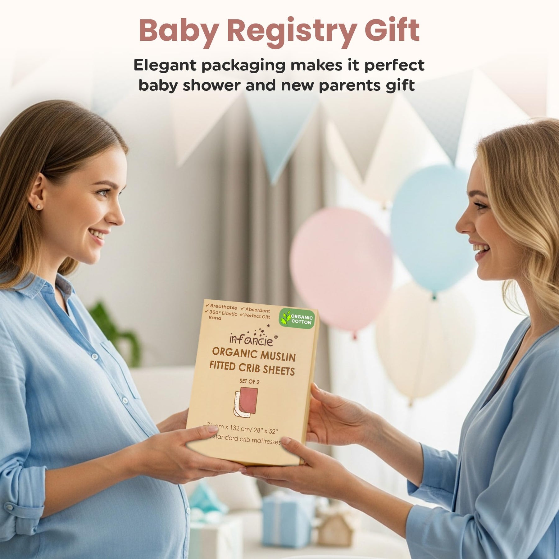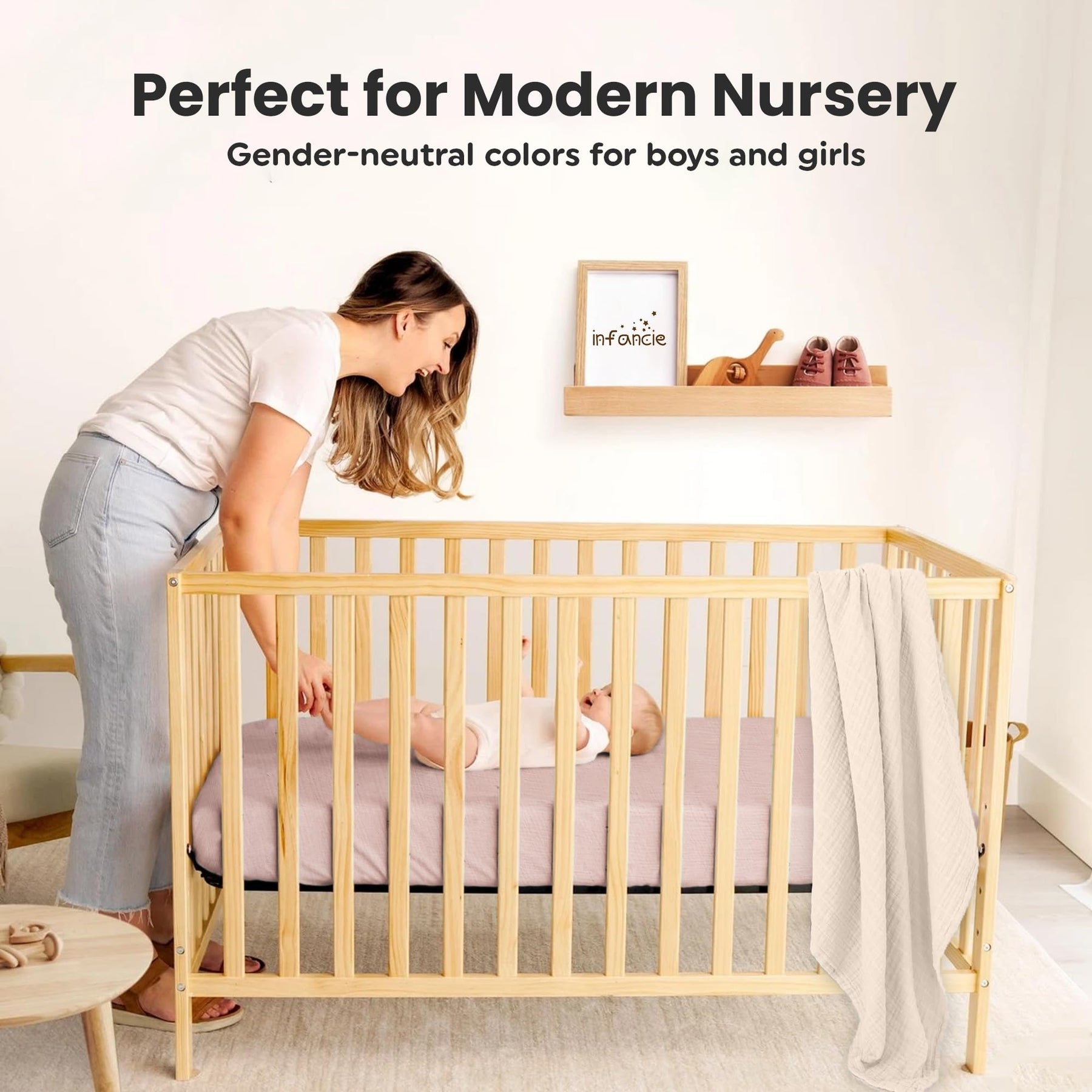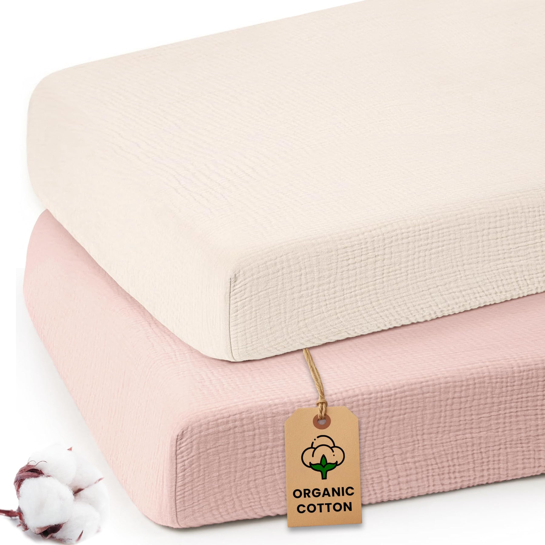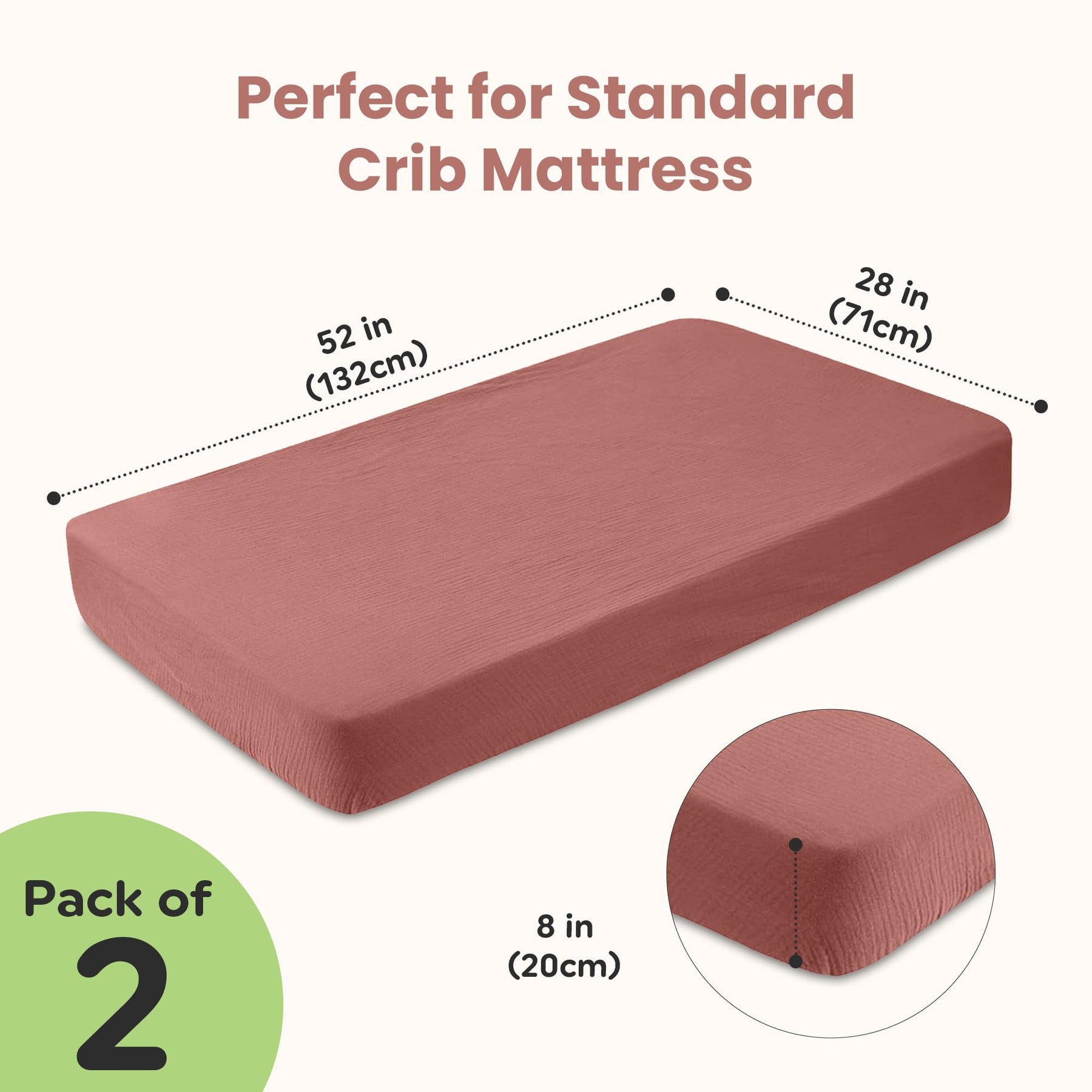 Infancie Organic Cotton Muslin Crib Sheets (Set of 2) β Soft & Breathable Fitted Sheets for Boys and Girls, Neutral Colors β Fits Standard Baby Crib Mattress (28 x 52 Inches)
