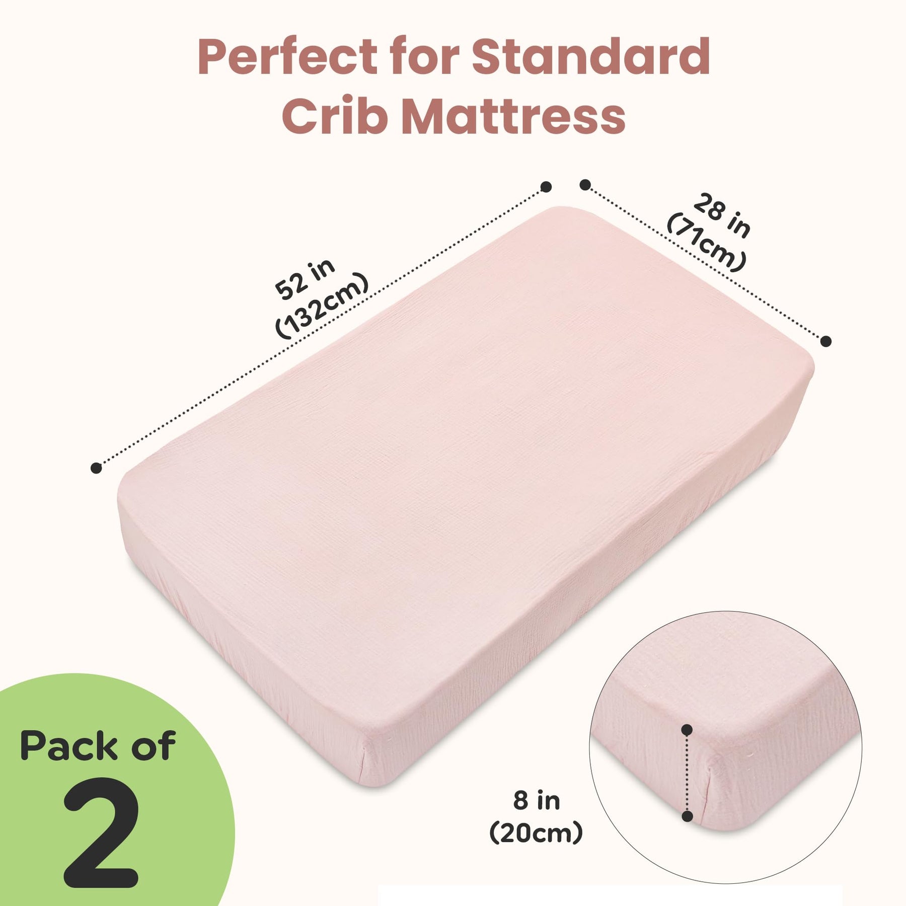 π’π ππ¨π« ππππ§πππ«π ππ«π’ππ¬ β Say goodbye to sizing and fit issues with our snug, elasticized crib sheets measuring 71 cm x 132 cm (28 x 52 inches). Theyβre thoughtfully designed to stay securely in place all night long, providing a smooth and wrinkle-free sleeping surface for your little one.